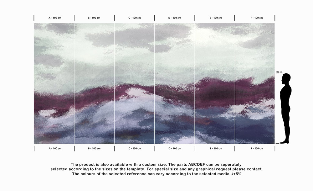 The product is also available with a custom size. The parts ABCDEF can be seperately selected according to the sizes on the template. For special size and any graphical request please contact. You can select the media from the “media guide”.