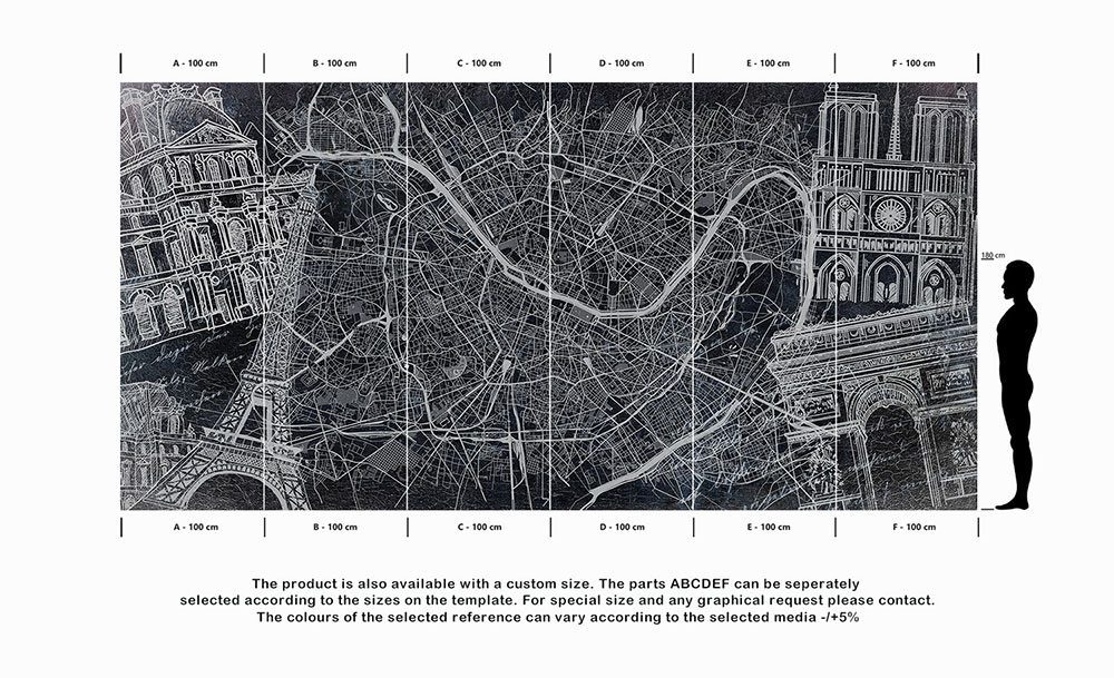 The product is also available with a custom size. The parts ABCDEF can be seperately selected according to the sizes on the template. For special size and any graphical request please contact. You can select the media from the “media guide”.